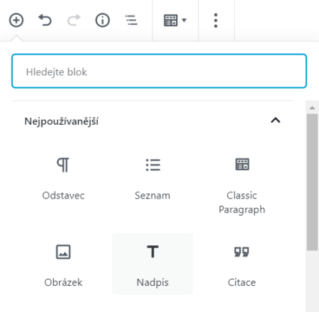Platí pro klasický (starší verze) i blokový editor (aktuální verze).